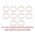 Kit com 100 suportes/Calço Para rolamento 608 substitui Buchas 8mm 30MM